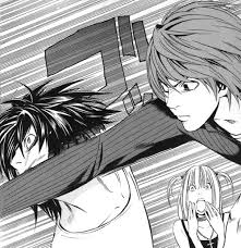 Hola!! Quería recomendaros un anime genial, los primeros capítulos son un poco aburridos pero es perfecto. Se llama Death Note y cuenta la historia de un estudiante japonés llamado Light Yagami que un día se encuentra un cuaderno en el que pone que si anotas el nombre de una persona ésta morirá. Al principio Light cree que es una broma pero luego se interesa y lo coge, cuando comprueba que el poder del cuaderno es real sigue usándolo y la policía empieza a investigar los asesinatos y se le empieza a conocer como Kira. La serie es chulísima os la recomiendo de verdad, tiene 37 capítulos y está acabada. Estas son algunas imágenes del manga.